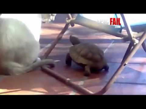 Watch how the turtle scare the hell out of the cat. LOL~